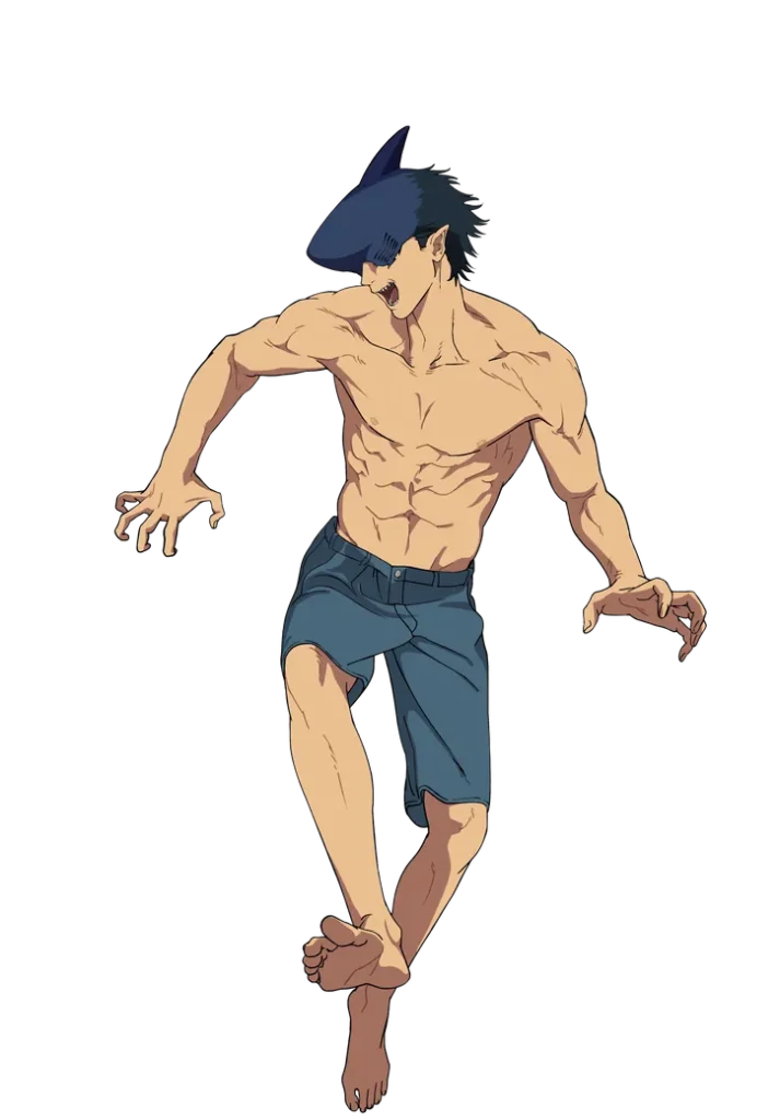 그러고 체인소맨(덴지)의 광팬 물고기물고기 열매 모델 상어인간 빔이란 녀석이 덴지의 새로운 동료로 합류한다. 이놈은 평지에서도 수영할 수 있는 헤엄헤엄 능력도 가지고 있다.