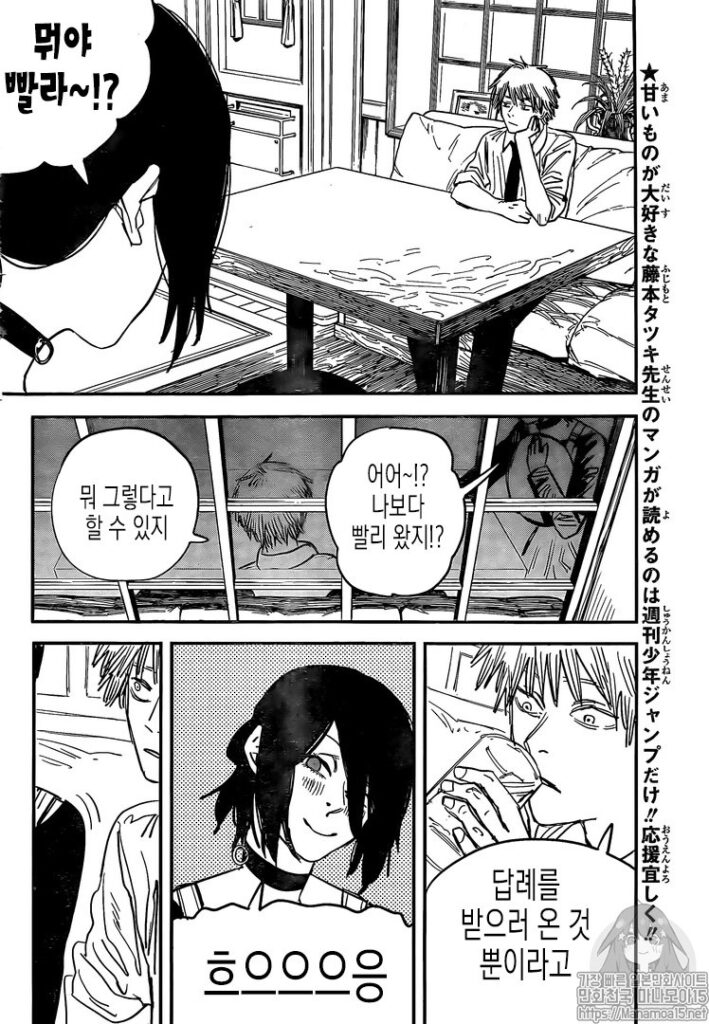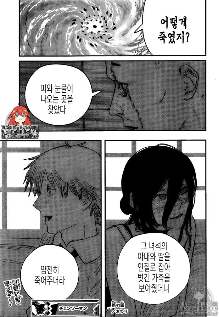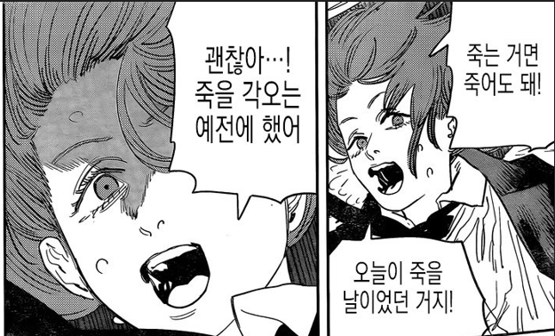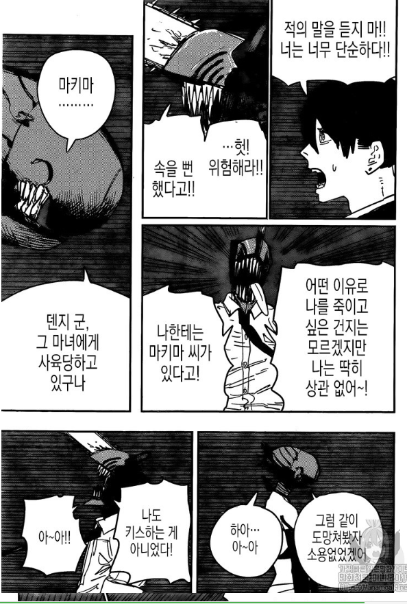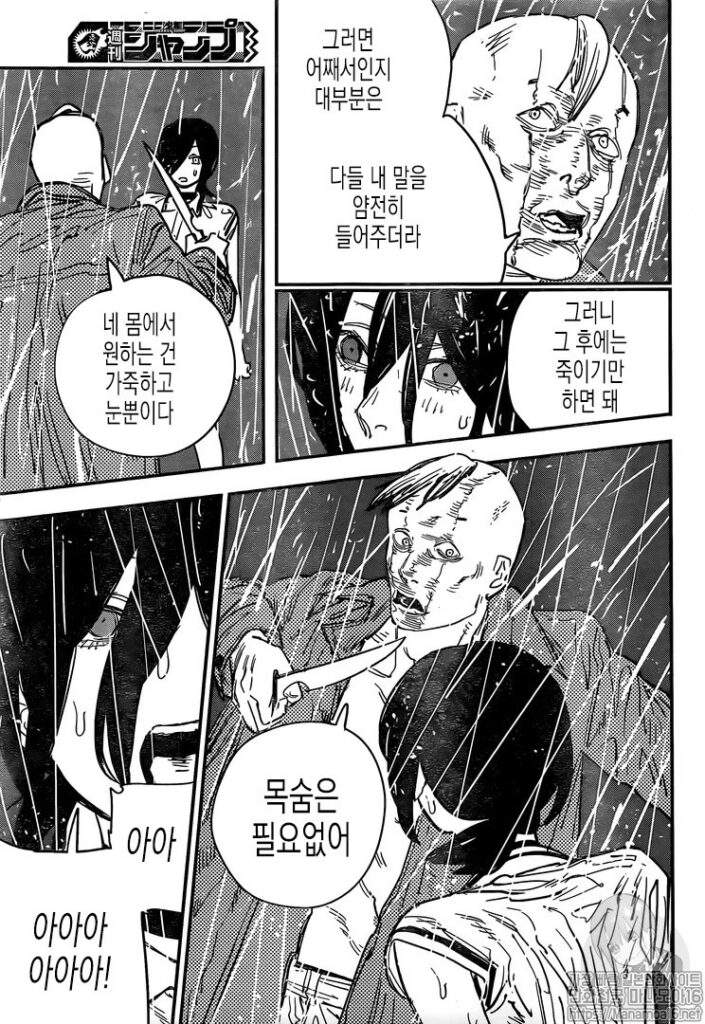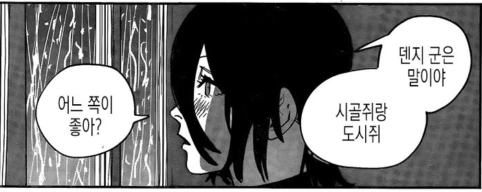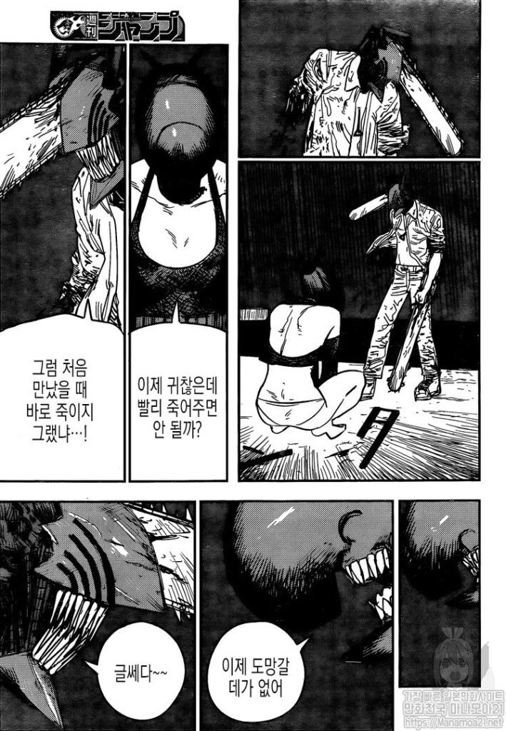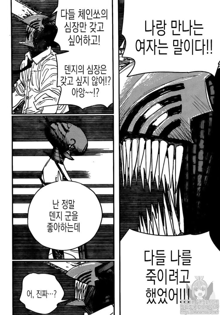 그때 덴지가 나한테도 감정이 있을까? 이지랄하더니 마키마가 뭐했더라 아무튼 심쿵하게 만들고 너 감정 있네 이랬던 것 같다. 여기서 덴지가 더욱 마키마에게 빠지게 되는 계기가 되는 씬임에는 틀림없다.