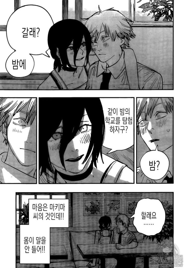 개뿔의 걱정이었고 체인소맨이 왜 인기가 있는지 알게 되는 순간이었다. 학교에서 또 둘이 시답잖게 꽁냥 거리더니 갑자기 수영을 알려주겠다더니 수영장으로 데려간다.