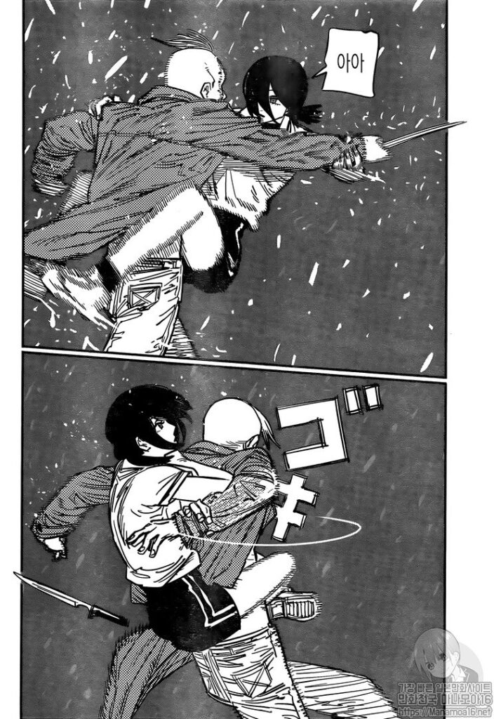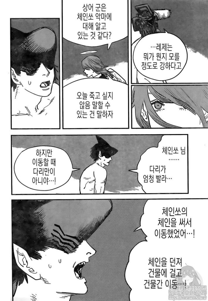 레제랑 짐빔이랑 싸울 때 그 흑막이랑 태풍 등장! 마키마랑 칼잡이, 파워 등장. 난리 부르스 배너!