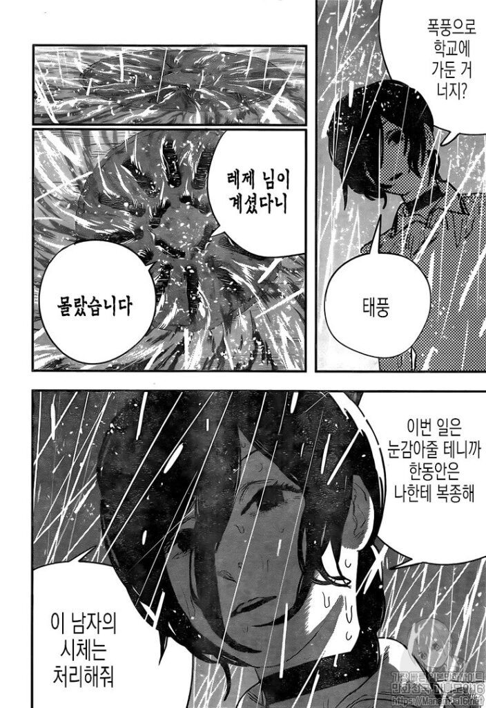 뭐 이러다가 이 장면 전쯤에 무슨 화장실에서 태풍이라는 악마와 뭐 어떤 흑막이 대화하는 게 있다. 타겟을 어떻게 죽였냐? 하니까 그 흑막이 인질 잡고 협박하면 개 쉬워~ 뭐 이런 게 있었다.