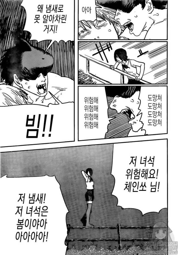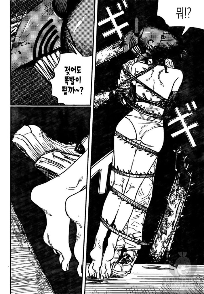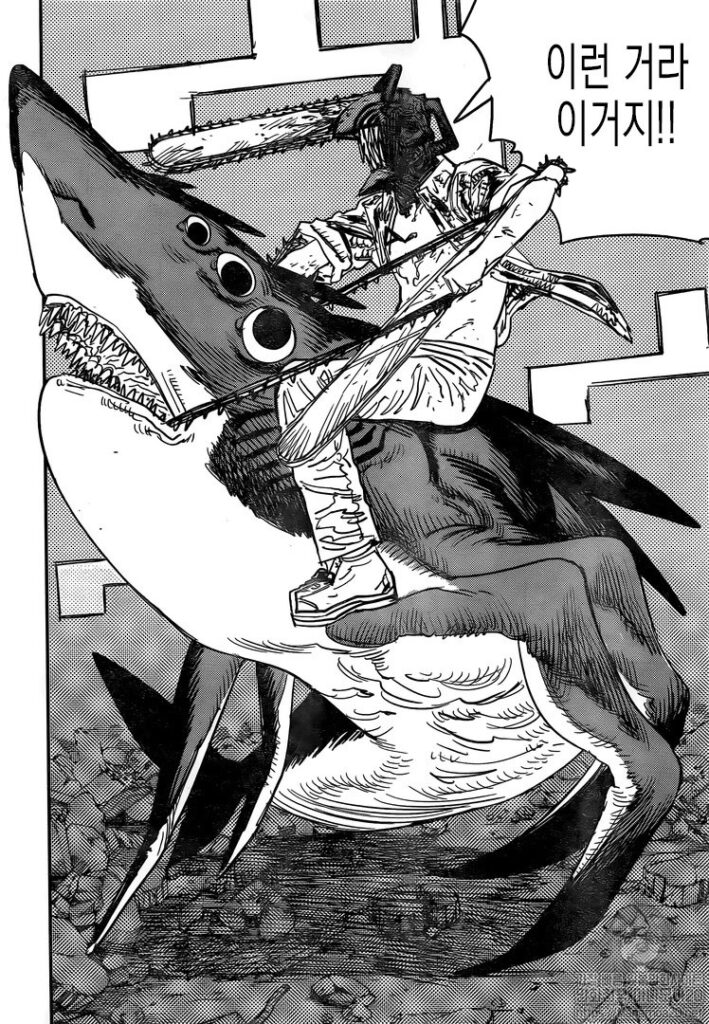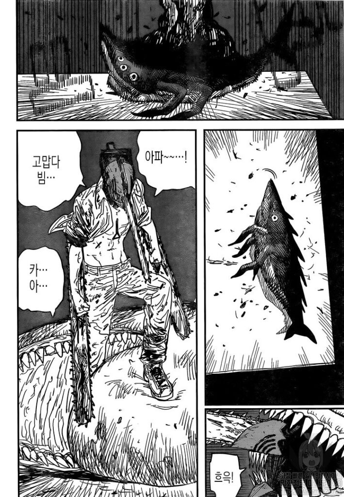 난 여기서 다시 너무 불안했다. 체인소맨이 전기톱 시동을 걸어야 되는데 물속에서는 못 거나..?? 그렇게 유인을 한 건가??