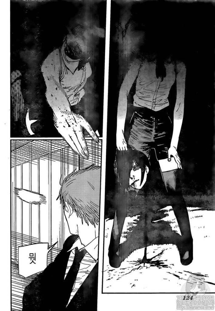 우리의 빌런 레제는 힙겹게 다시 싸우려고 하는데 마키마가 토닥여주는듯한 모습으로 손을 잡아주어 막는다. 결국 안전핀도 못 뽑고 허무하게 죽어버리고 만다. 사실 천사는 개 쎈 놈인가? 마키마도 쎈캐릭일 것 같다는 의문이 생겼다. 나중에 원작 봐바야지…