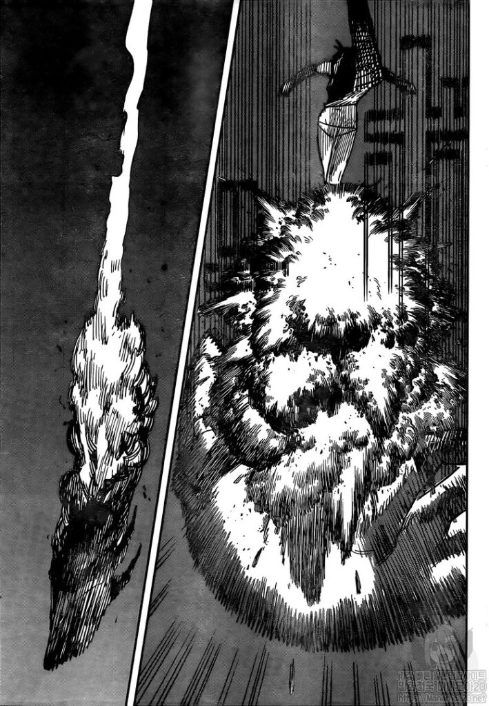 처음에 곰팡이곰팡이 능력자에게 공격받아 자기 모가지를 잘라서 건물 안으로 집어넣더니 폭발시키고 막 돌진을 해서 터지고 엄청난 전투센스를 보여준다.