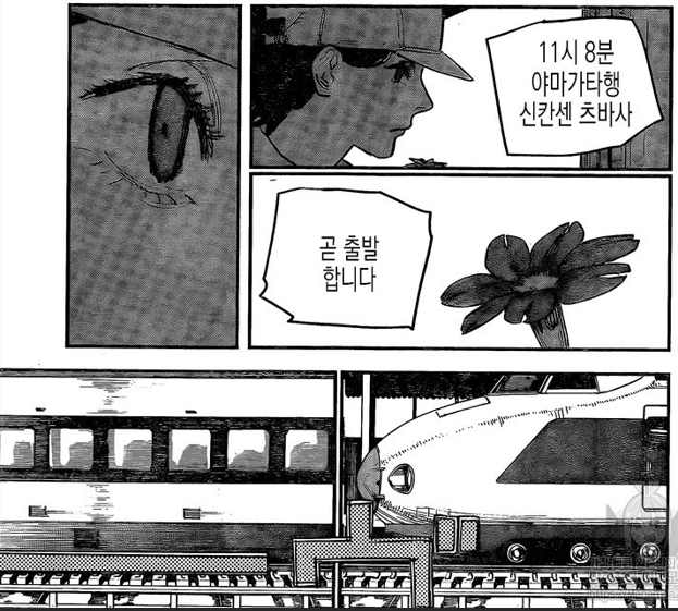레제 떠나는 열차에 서있다가 덴지 처음 만났을 때 받았던 기부천사 꽃 받게 되고 열차에 타지 않고 왠지 덴지를 향하는 것처럼 보인다.