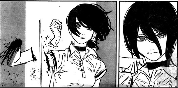 이 와중에 국가 공공기관. 악마를 때려잡는 공안? 이들의 중간관리자로 보이는 마키마라는 미인의 여자가 등장한다. 아까 나왔던 파워란 여자의 피를 뽑아야 한다고 짐빔이랑 바꾼 여자.