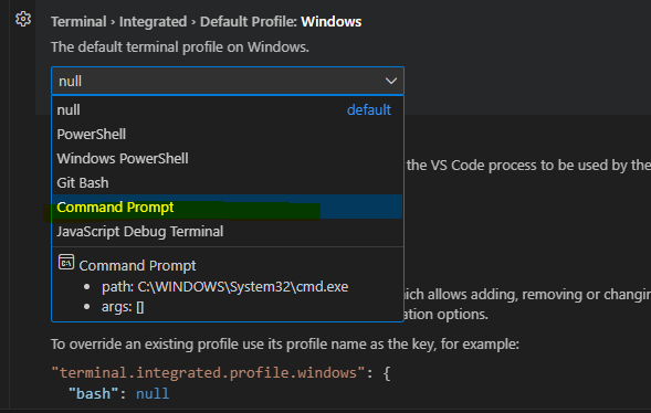 [VS Code] 터미널 기본값을 CMD로 변경하기 (PowerShell → CMD)