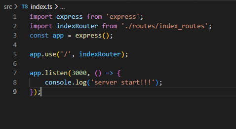 방금 생성한 index_routes를 import해서 / 요청은 index_routes.ts가 처리하게 했다.