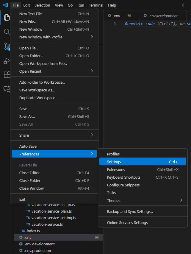 1. File > Preferences > Settings 클릭
